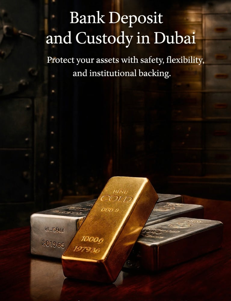 We offer an exclusive banking custody service in Dubai, one of the world's most secure and stable financial hubs, designed to protect, preserve, and manage your assets in a safe and structured manner